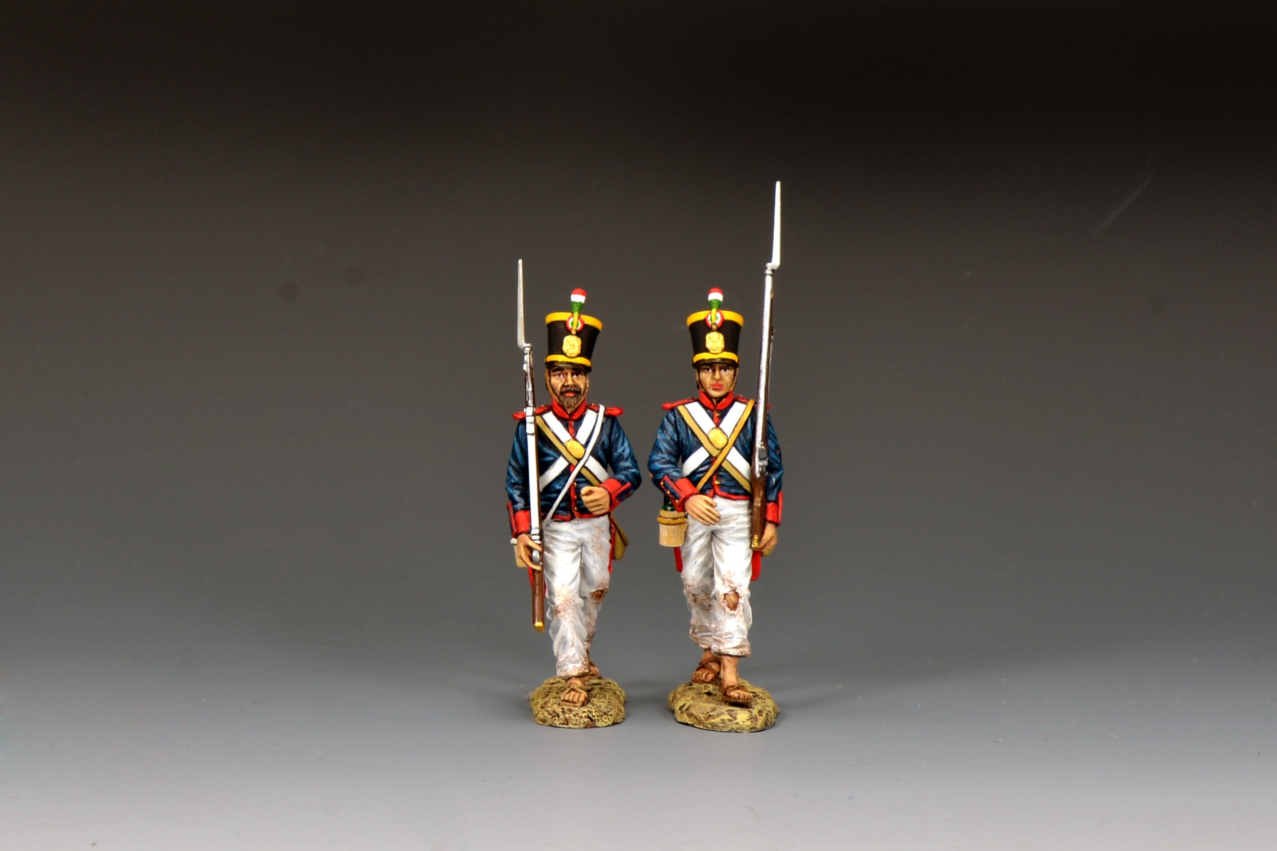 A pair of Mexican soldiers march towards the Alamo's walls.