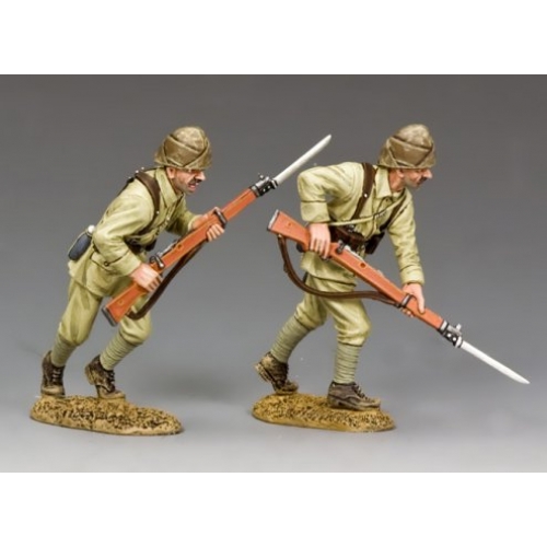 Two “Johnny Turks” charge forward with their rifles and bayonets.